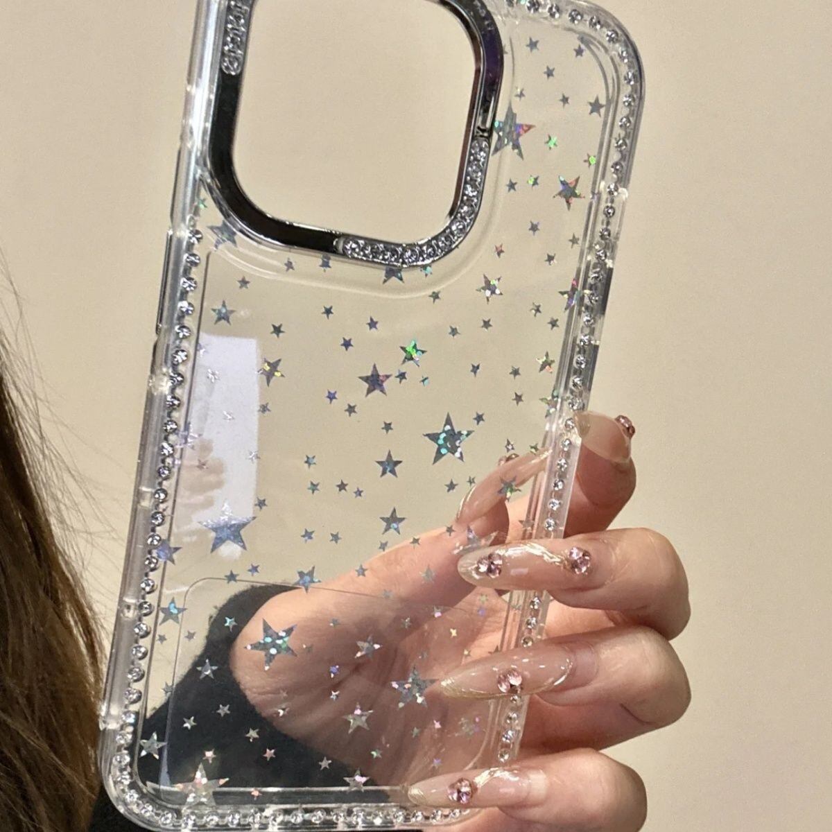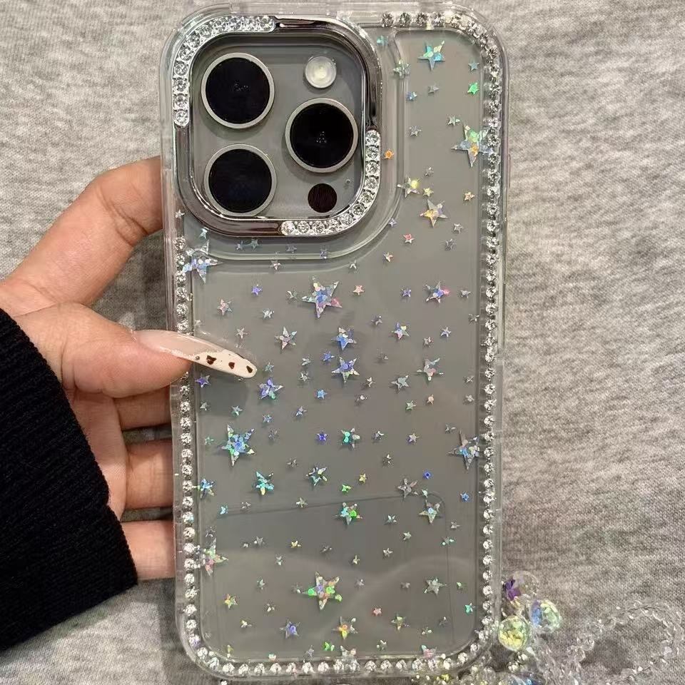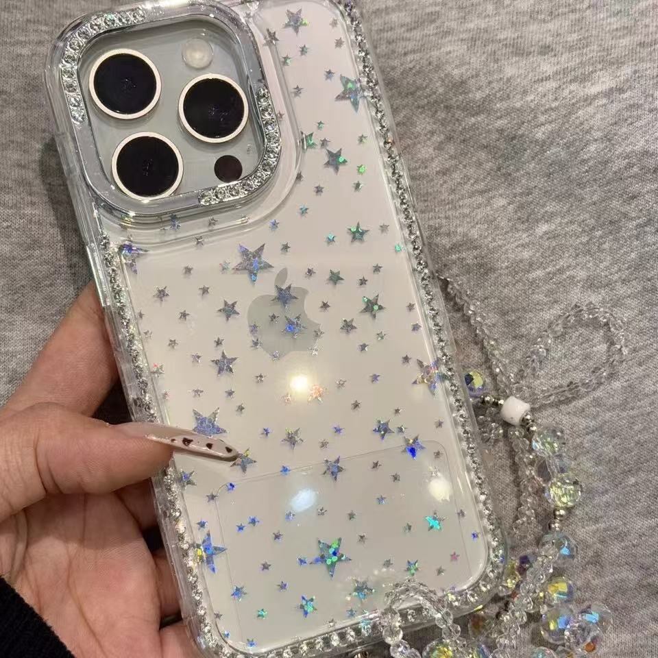★ iPhone16 キラキラ星iPhoneケース おしゃれ 夏 ストラップつき 可愛い 韓国ファッション iPhone14 iPhone14pro iPhone 14promax ★送料無料