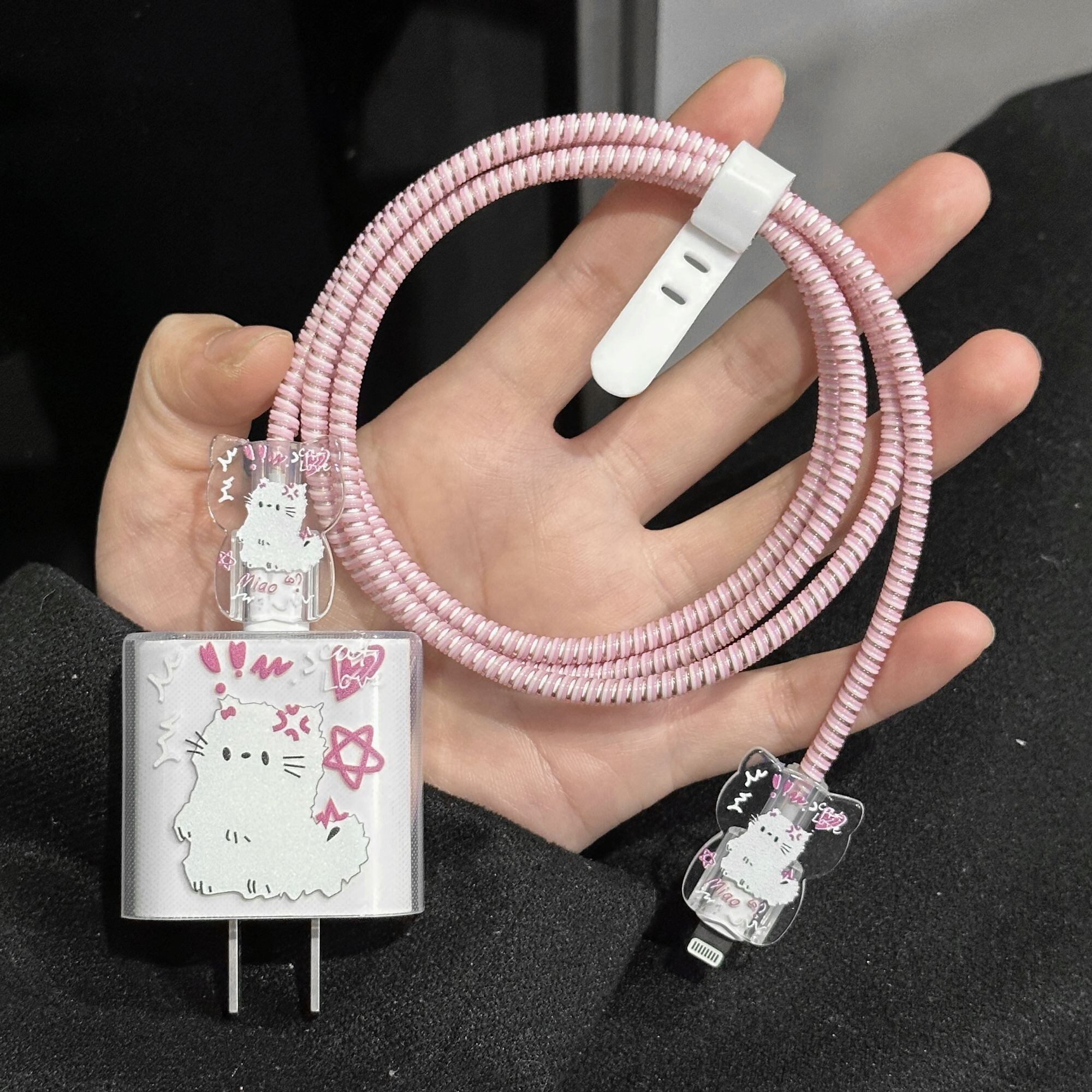 可愛い猫アップル USB-C電源アダプタケース 充電ケーブル保護 可愛い ★送料無料