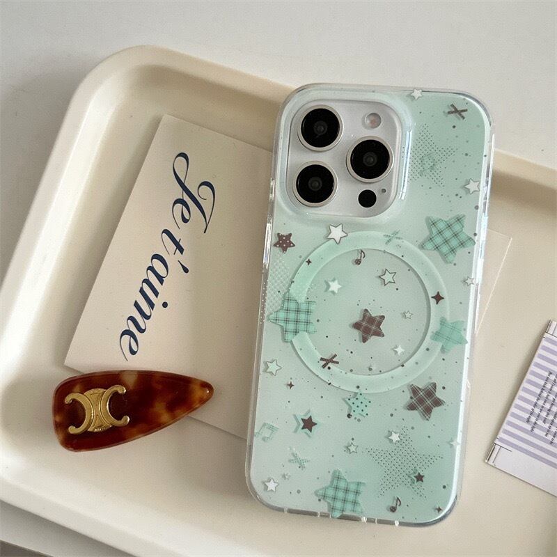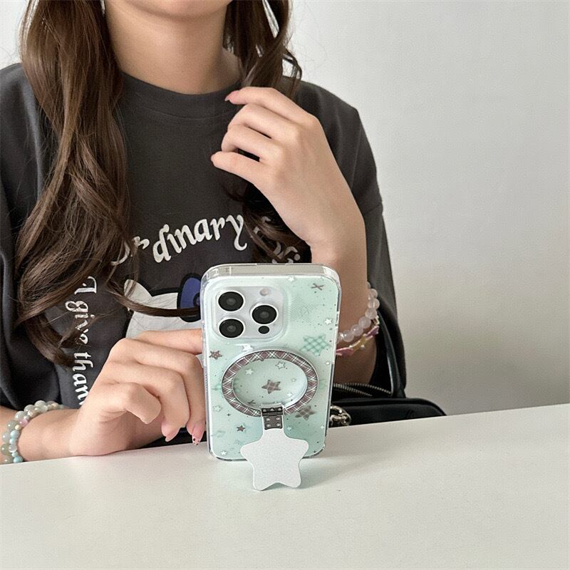★iPhone16 星の磁石iPhoneケース グリーン 夏 磁石グリップ付き ★送料無料