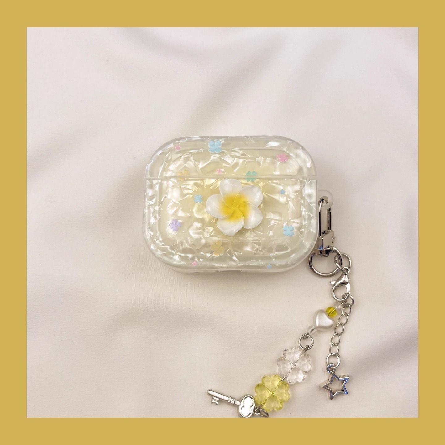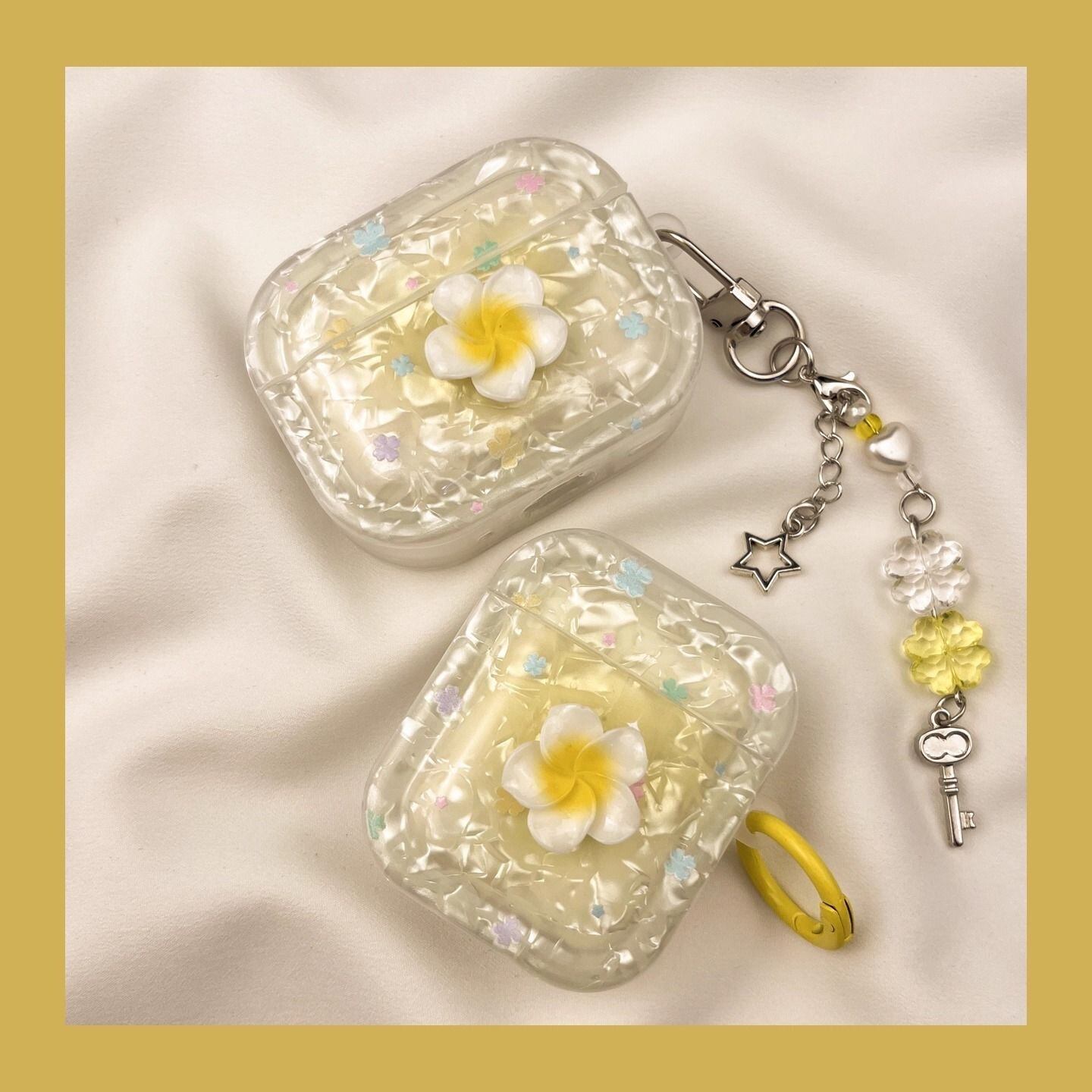 イエローシェルAirPodsケース 夏 チャーム付き AirPods4 韓国ファッション★送料無料