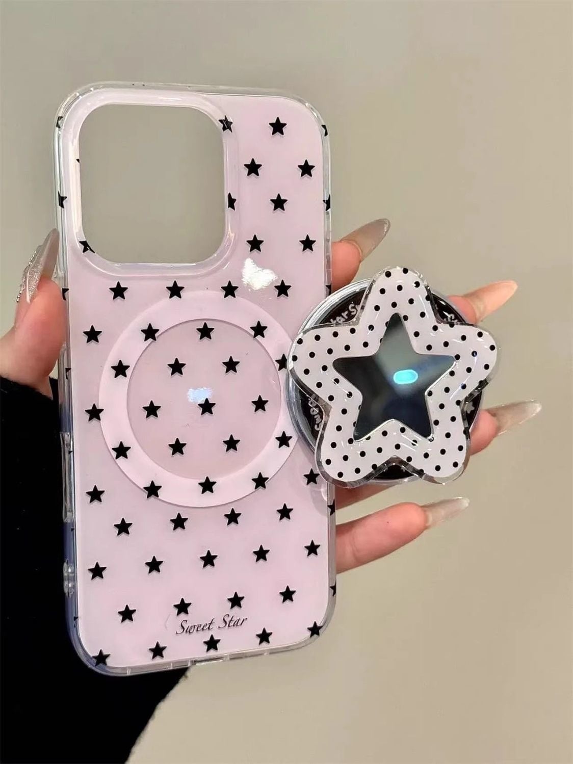 Magsafe対応 星のミラー磁石iPhoneケース グリップ付き 夏 iPhone 16plus ★送料無料
