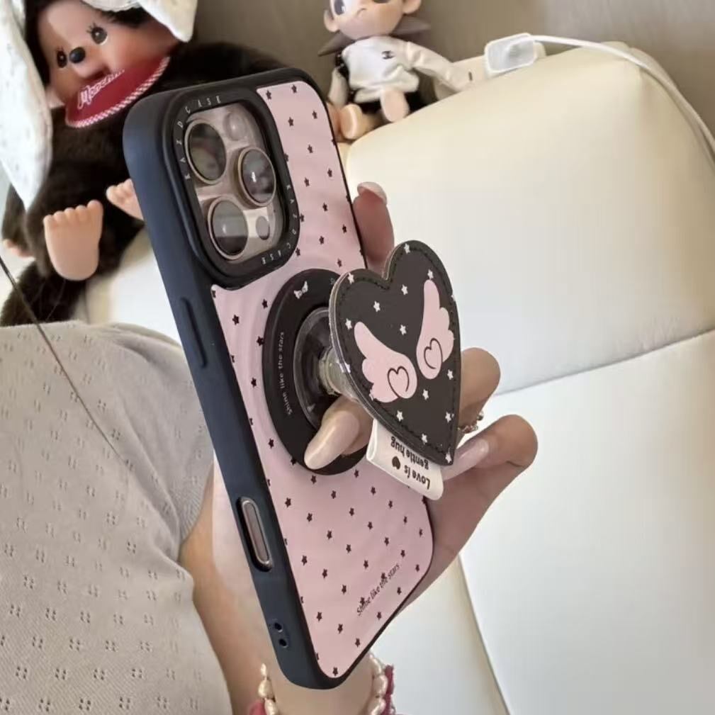 ★ iPhone17 ハート磁石iPhoneケース 韓国風 グリップ付き 韓国ファッション iPhone14 iPhone14pro iPhone 14promax ★送料無料