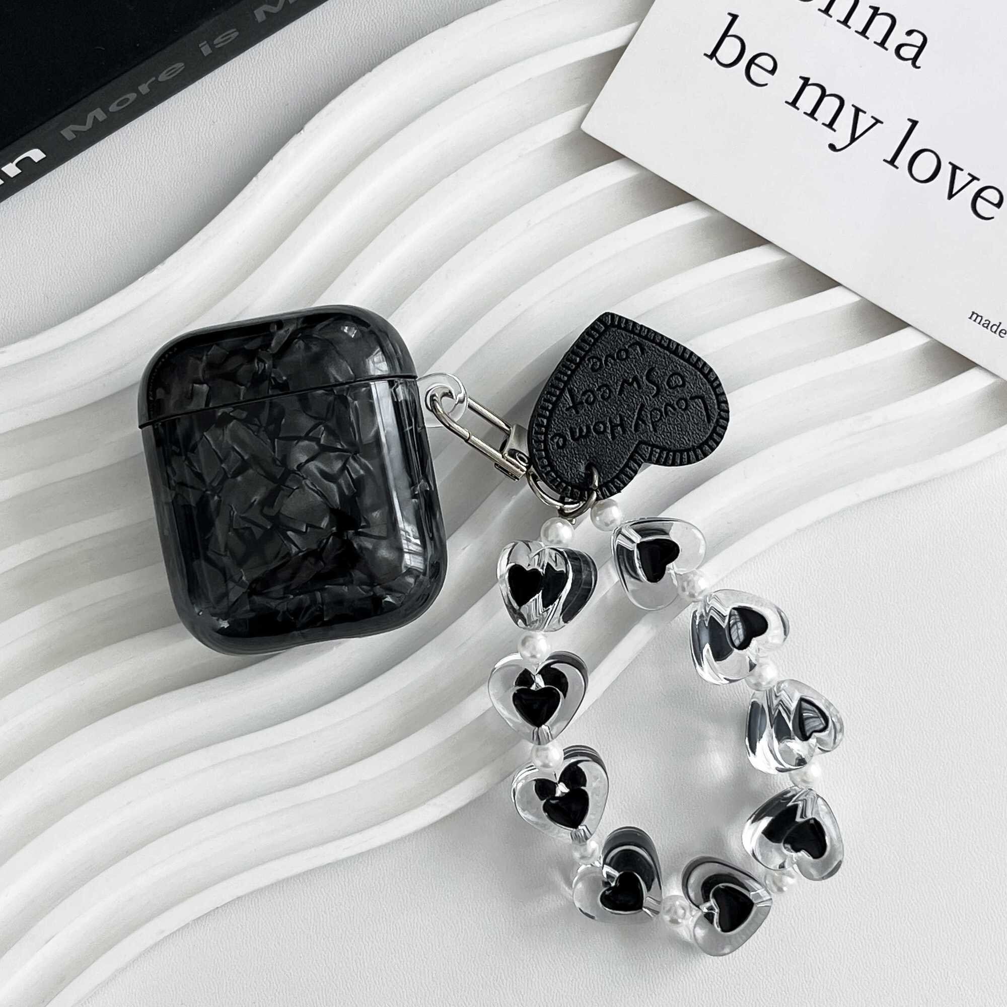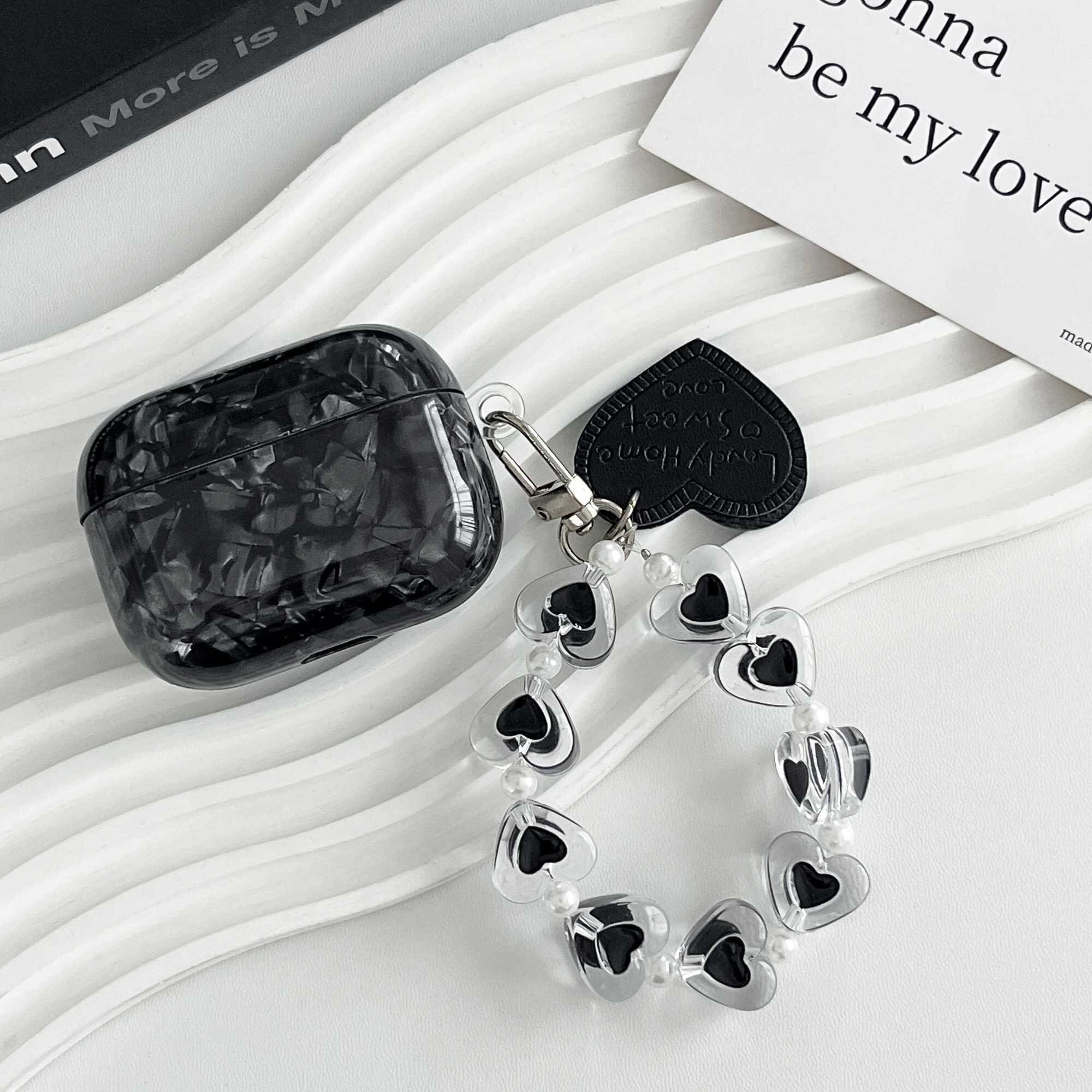 ★AirPods pro3 ブラックシェルAirPodsケース 高級感 夏 ストラップ付き AirPods4 韓国ファッション★送料無料