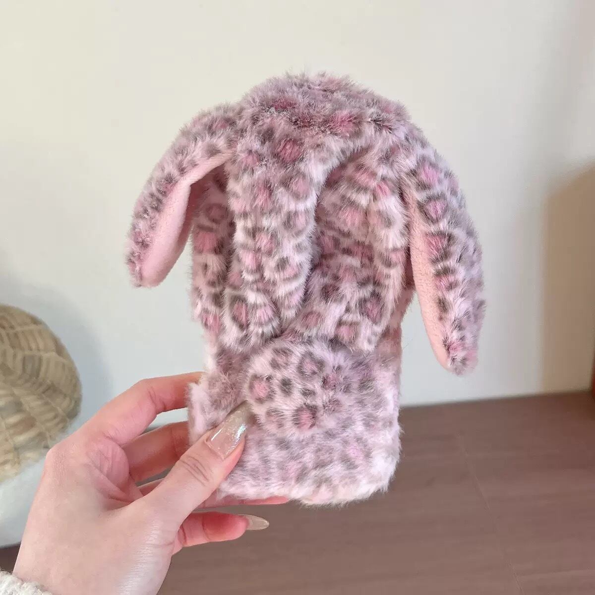 ★ iPhone17 ヒョウ柄うさぎiPhoneケース ふわふわ 冬のケース 韓国ファッション iPhone14 iPhone14pro iPhone 14promax ★送料無料