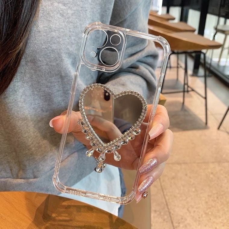 ★iPhone16 iPhone13mini 透明iPhoneケース ハート鏡 鏡つき ミラーケース 可愛いケース 韓国ファッション iPhone14 iPhone14pro iPhone 14promax ★送料無料