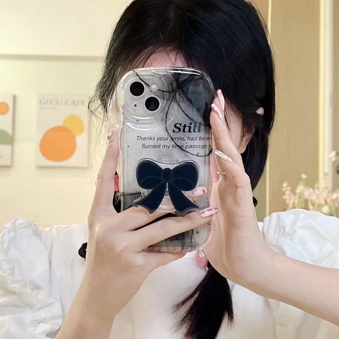 可愛いiPhoneケース 半透明 リボングリップ付き スマホホルダー付き 韓国ファッション iPhone14 iPhone14pro iPhone 14promax ★送料無料