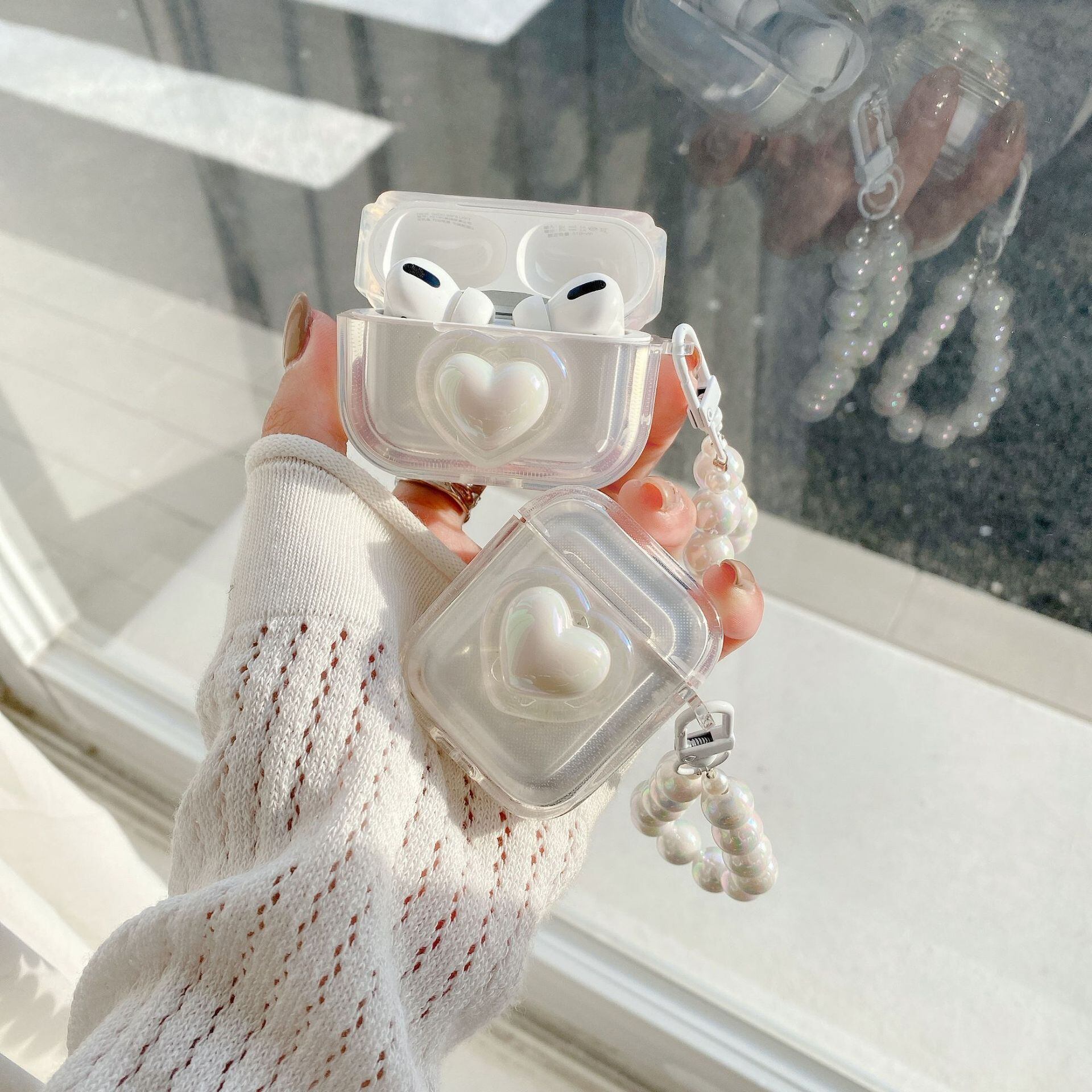 可愛いAirPodsケース オーロラハート ストラップ付き AirPods pro2 韓国ファッション★送料無料