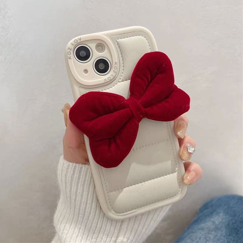 ★ iPhone15 クッションiPhoneケース レッドリボン 韓国ファッション iPhone14 iPhone14pro iPhone 14promax ★送料無料
