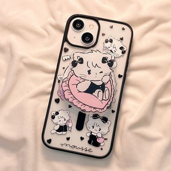 ★ iPhone16 可愛い猫磁石グリップ 透明iPhoneケース 韓国ファッション iPhone14 iPhone14pro iPhone 14promax ★送料無料