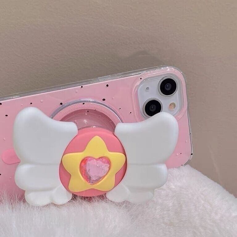 ★ iPhone15 可愛い羽磁石グリップ ピンク iPhoneケース 韓国ファッション iPhone14 iPhone14pro iPhone 14promax ★送料無料